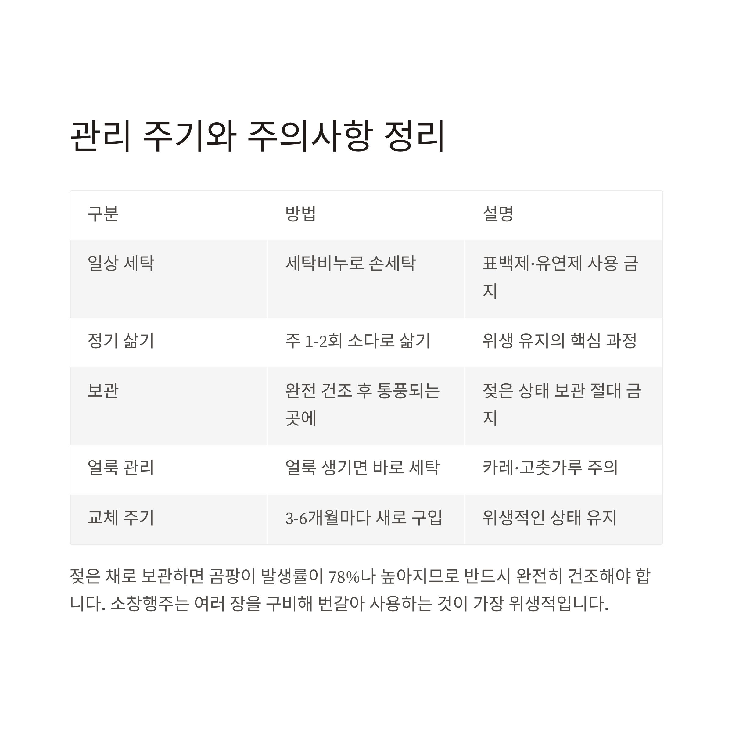 데이터에 따르면 젖은 채 보관하면 곰팡이 발생률이 78%나 높아지니 반드시 건조하세요.