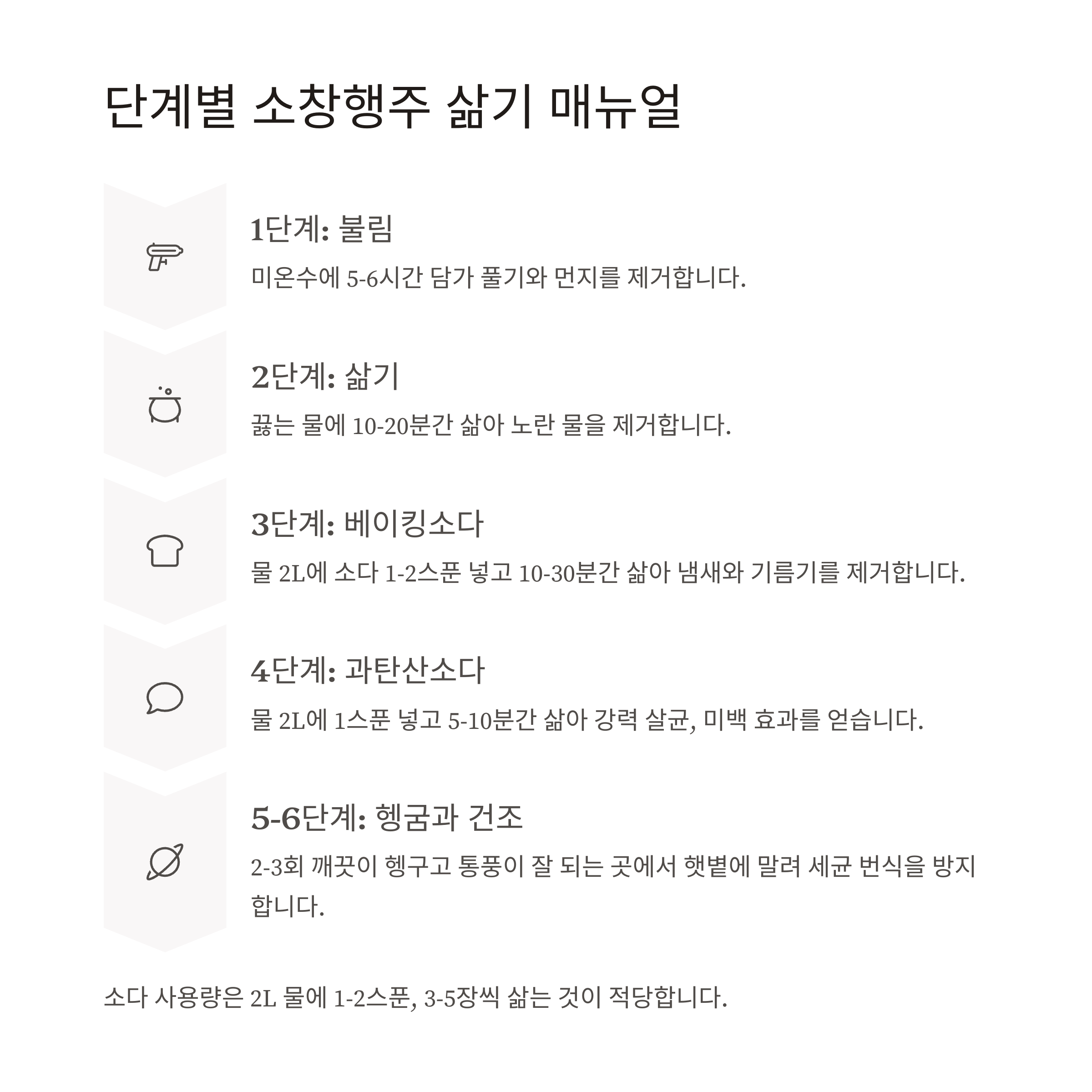 정기 삶기 주 1~2회 소다 삶기 살균, 위생 유지