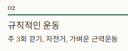 - 운동: 주 3회 걷기, 자전거, 가벼운 근력운동
