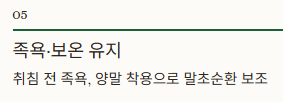 - 족욕·보온 유지: 취침 전 족욕, 양말 착용 등 말초순환 보조