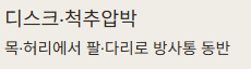 | 디스크·척추압박 | 목·허리→팔·다리로 방사통+저림 | 목·허리디스크, 척추관협착증 |