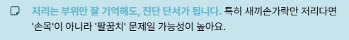 저리는 부위만 잘 기억해도, 진단 단서가 됩니다.