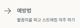 • 팔꿈치를 펴고 스트레칭을 자주 해주세요.