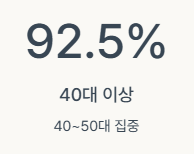 연령 40대 이상 92.5%, 특히 40~50대 집중