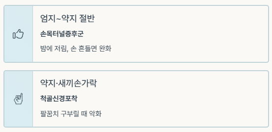 특히 새끼손가락만 저리다면 ‘손목’이 아니라 ‘팔꿈치’ 문제일 가능성이 높아요.
