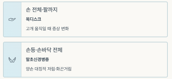 손 전체 저림 + 목·어깨 뻐근함 목디스크 고개 돌릴 때 악화