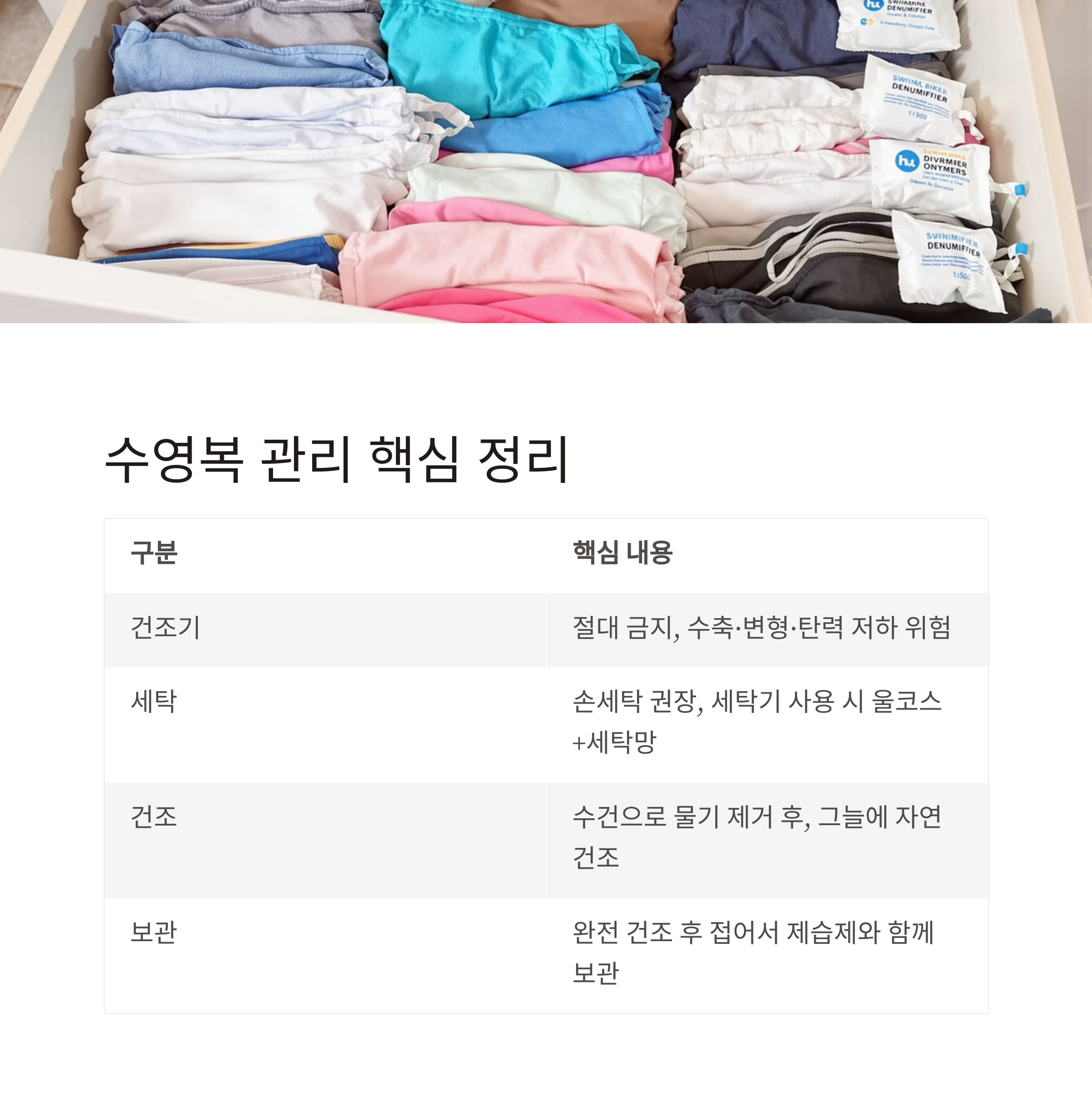 이 표만 잘 기억해도 수영복 관리, 어렵지 않습니다!
