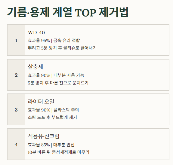 | 1위 | WD-40 | 95% | 금속·유리 적합 |