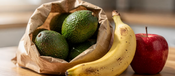 숙성을 빠르게 하고 싶다면 사과나 바나나를 함께 넣는 방법이 있어요.