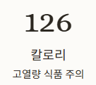| 칼로리 | 126kcal | 45% | 고열량 식품 |