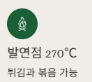발연점은 270℃로 고온 조리에도 적합하다는 점이 특징으로 언급됩니다.