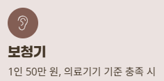 | 보청기 | 1인 50만 원 | 의료기기 기준 충족 시 |
