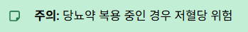 - 주의: 당뇨약 복용 중인 경우 저혈당 위험