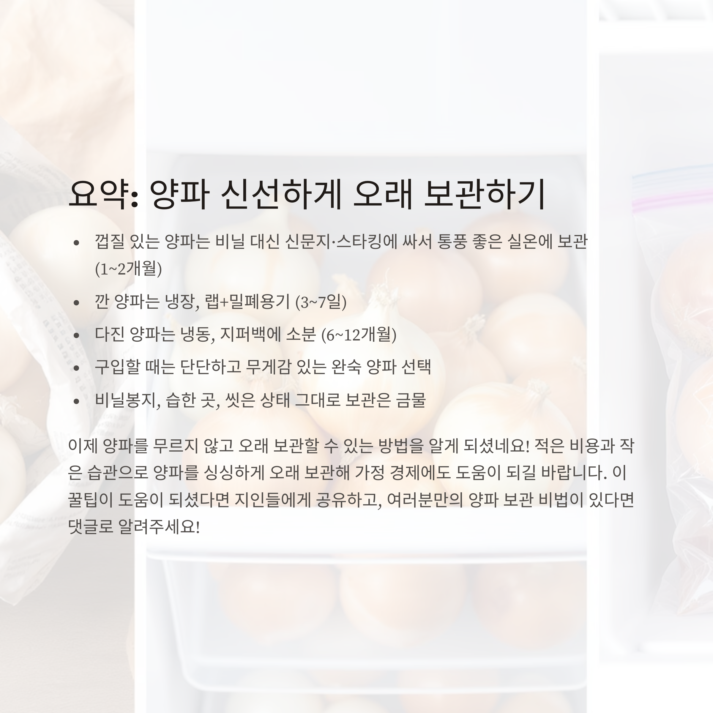양파를 제대로 보관하면 5kg 기준으로 연간 약 4만 원 정도를 절약할 수 있습니다. 특히 신문지·스타킹만으로도 1~2개월 동안 신선도를 80~90% 유지할 수 있습니다.