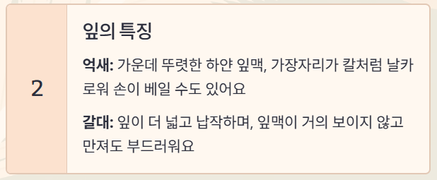 줄기와 잎의 생김새와 촉감이 확연히 다릅니다
