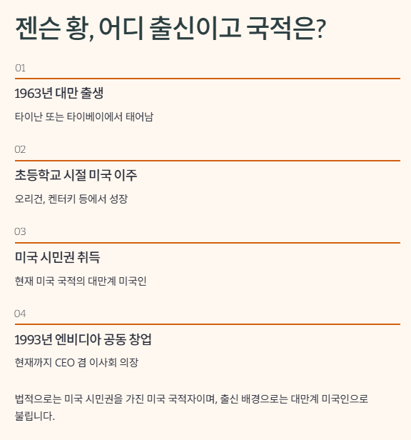 젠슨 황의 국적·이력 요약표
