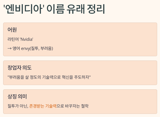 엔비디아라는 이름은 단순히 멋지게 들리도록 지은 게 아닙니다. 이 이름엔 창업자의 철학과 의도가 녹아 있죠.