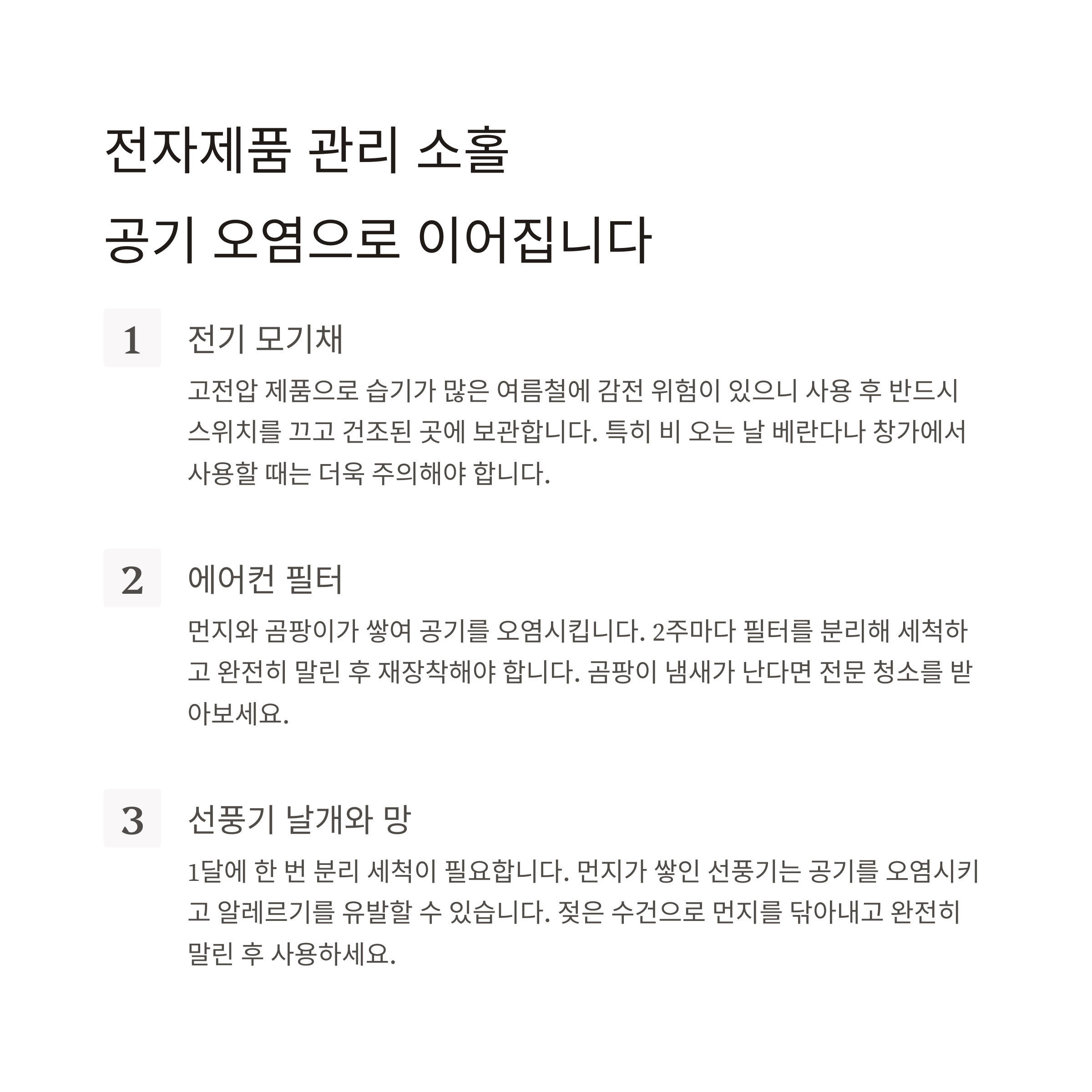 전자제품 관리 소홀, 공기 오염으로 이어집니다
