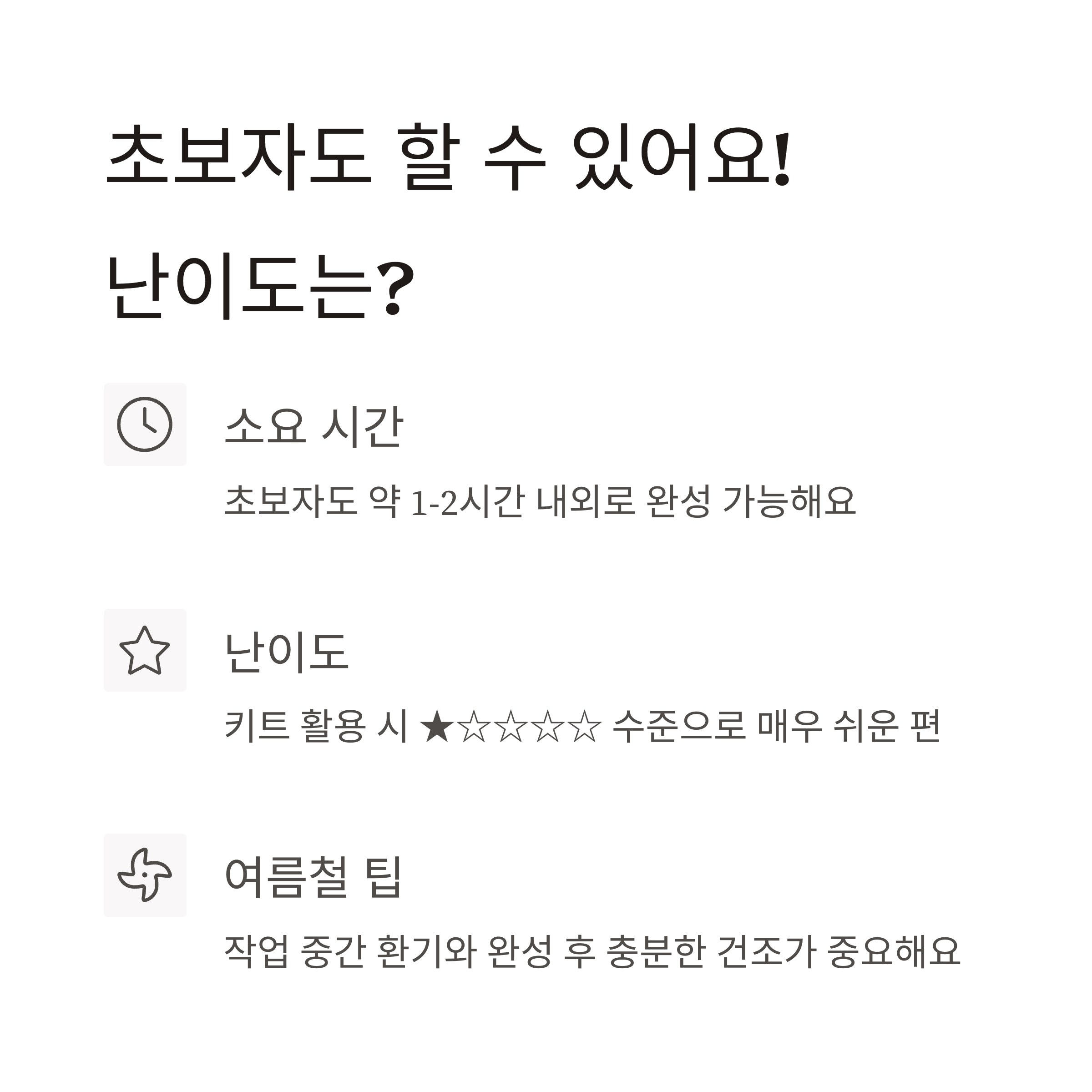 처음 도전하는 사람도 부담 없이 완성할 수 있습니다.