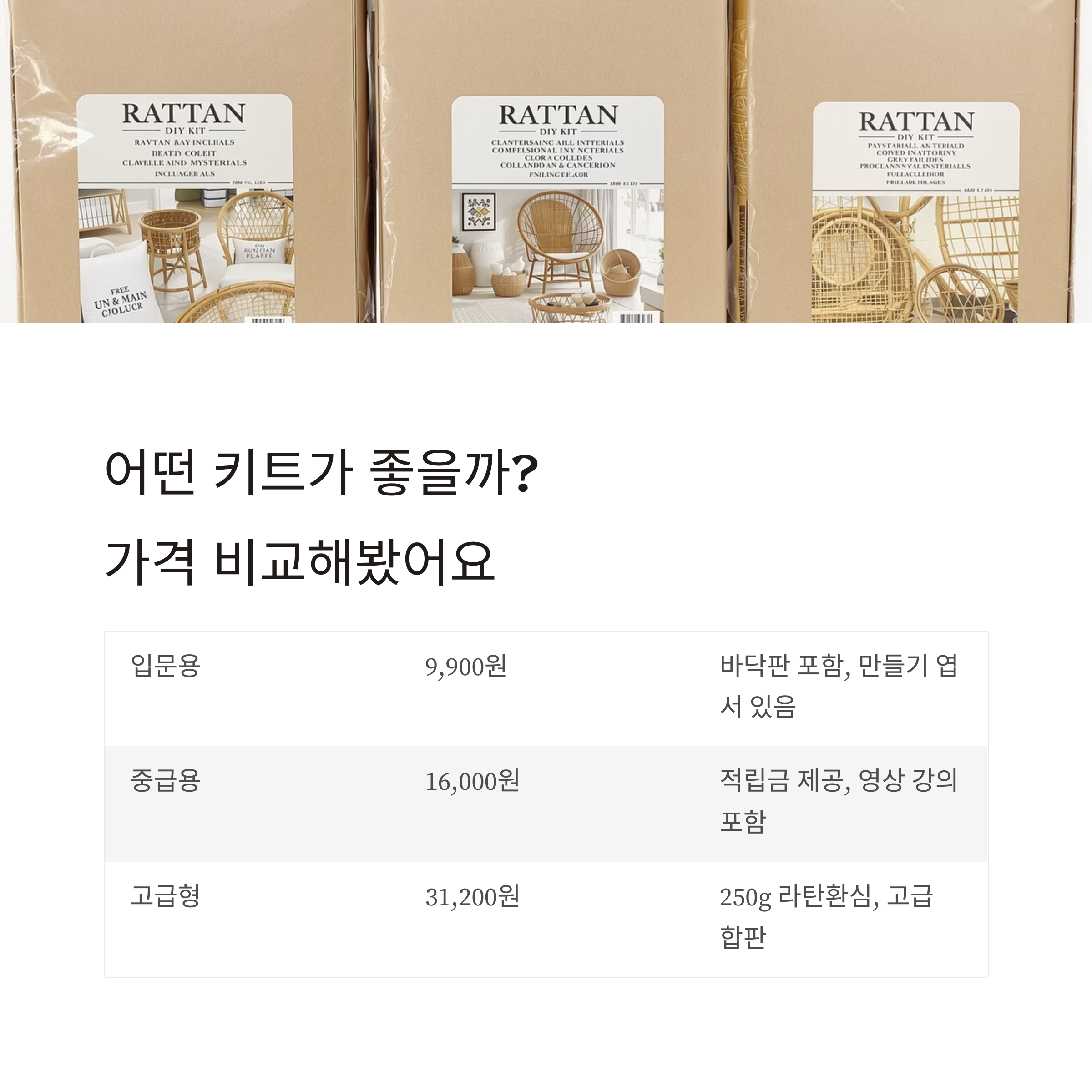 라탄케인 DIY 키트 가격 비교표
