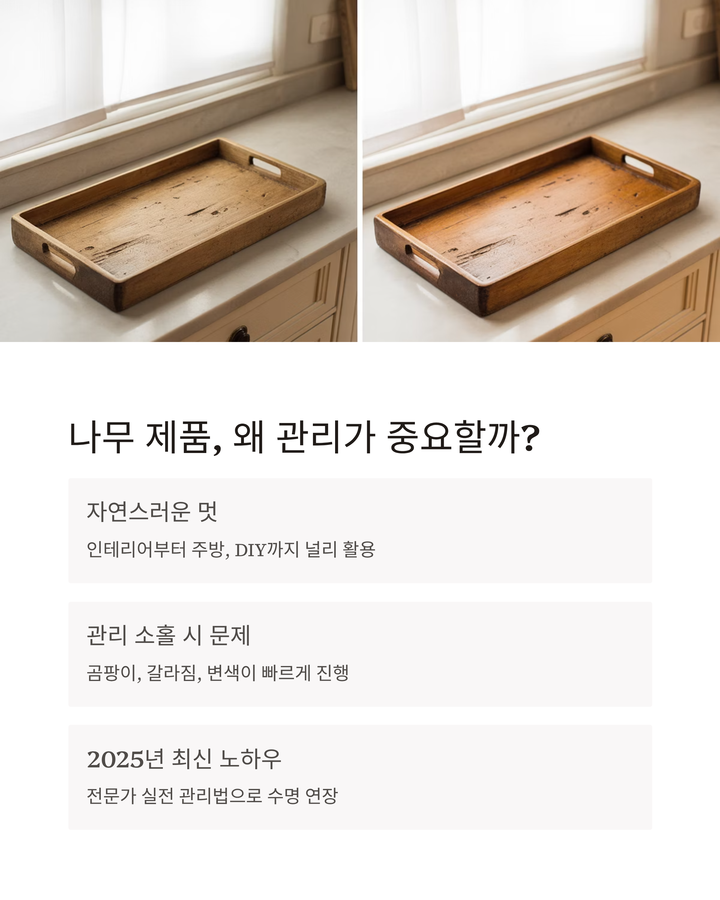 나무 트레이 관리의 기본은 바로 ‘습기 제거’ 예요.