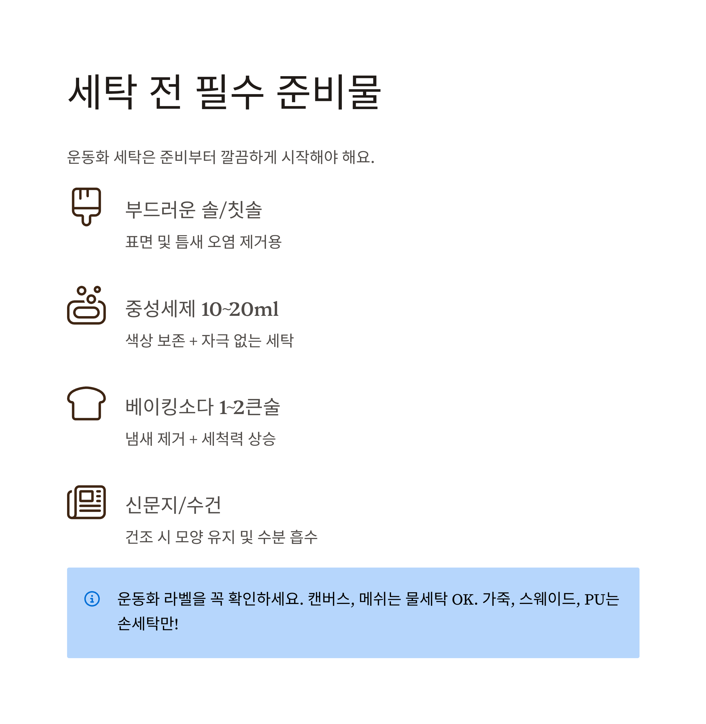 이번 글에서는 소재별, 세탁 빈도, 세제 종류, 건조법까지 운동화 세탁에 필요한 모든 정보를 단계별로 꼼꼼하게 정리해드립니다.