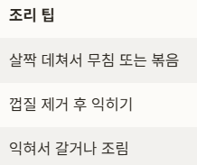 | 당근·호박·시금치 | 베타카로틴 풍부 | 살짝 데쳐서 무침 또는 볶음 |