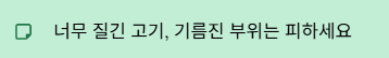 너무 질긴 고기, 기름진 부위는 피하세요.