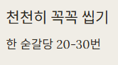 | 천천히 꼭꼭 씹기 | 한 숟갈당 20~30번 |