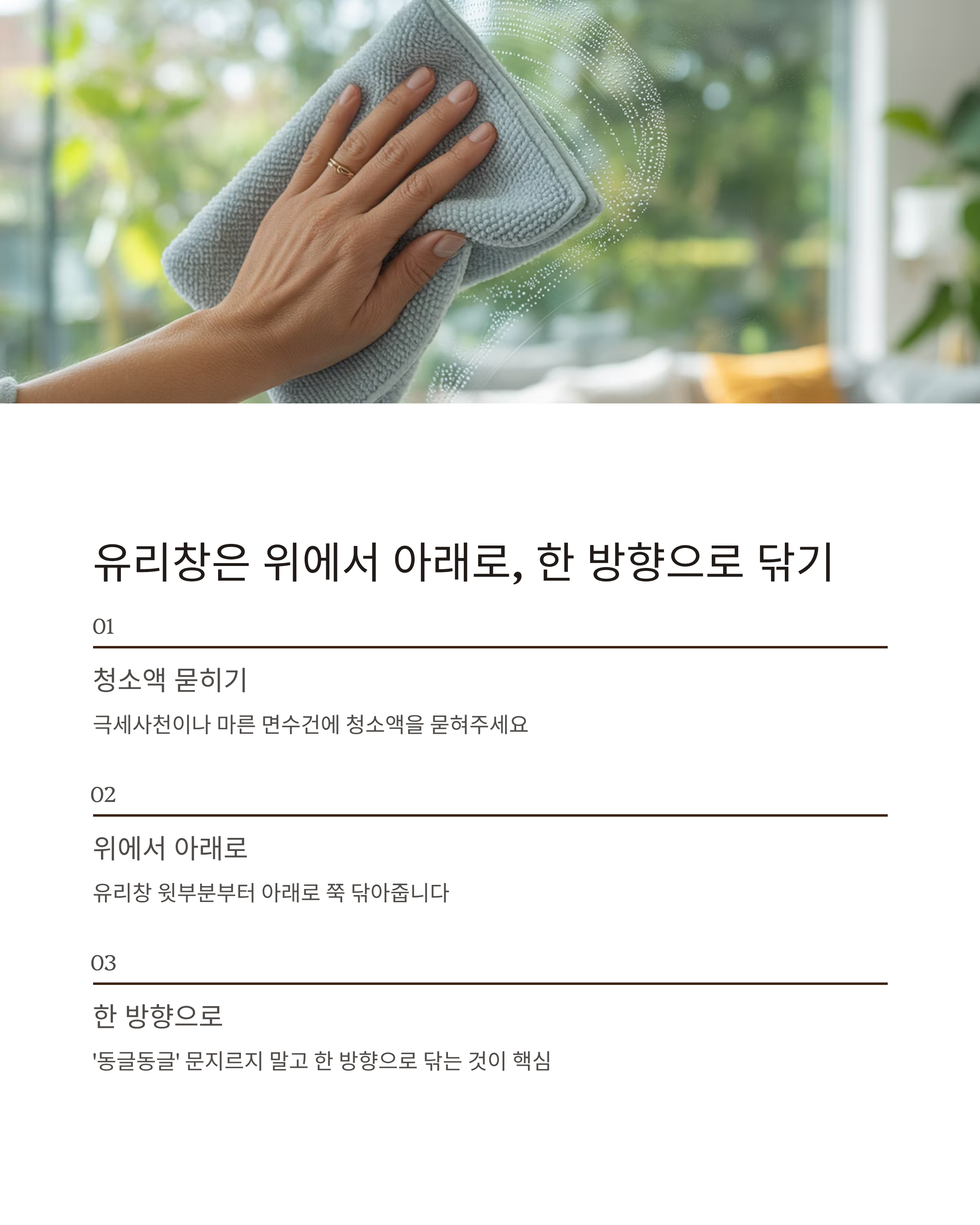 유리창은 위에서 아래로, 한 방향으로 닦기