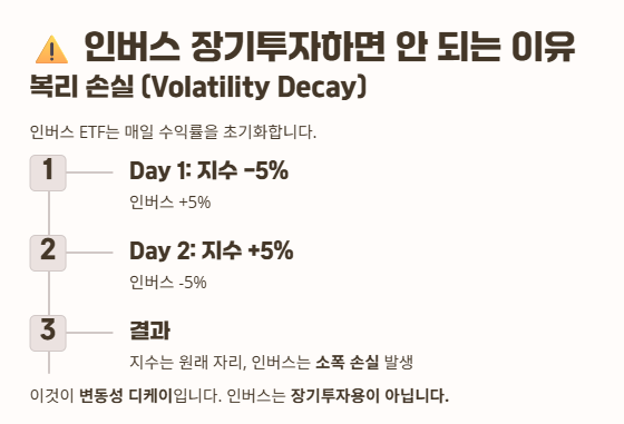 인버스는 장기 투자 상품이 아니라 단기 전략 상품입니다.