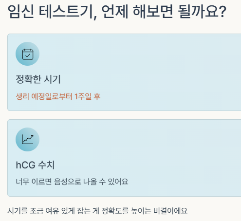 너무 이른 시점에는 hCG 수치가 낮아 음성으로 나올 수 있기 때문에, 시기를 조금 여유 있게 잡는 게 좋아요.