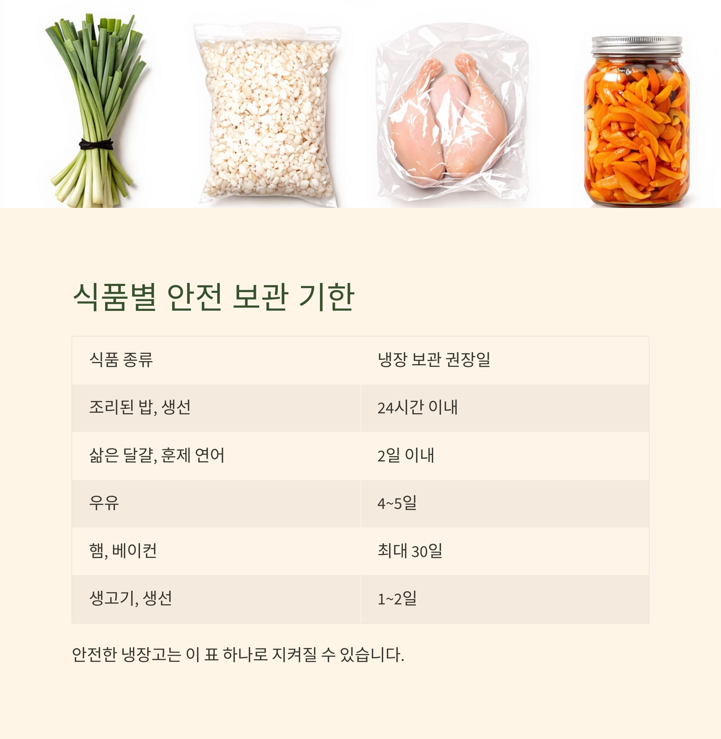 식품 종류 냉장 보관 권장일 유통기한 초과 시 위험