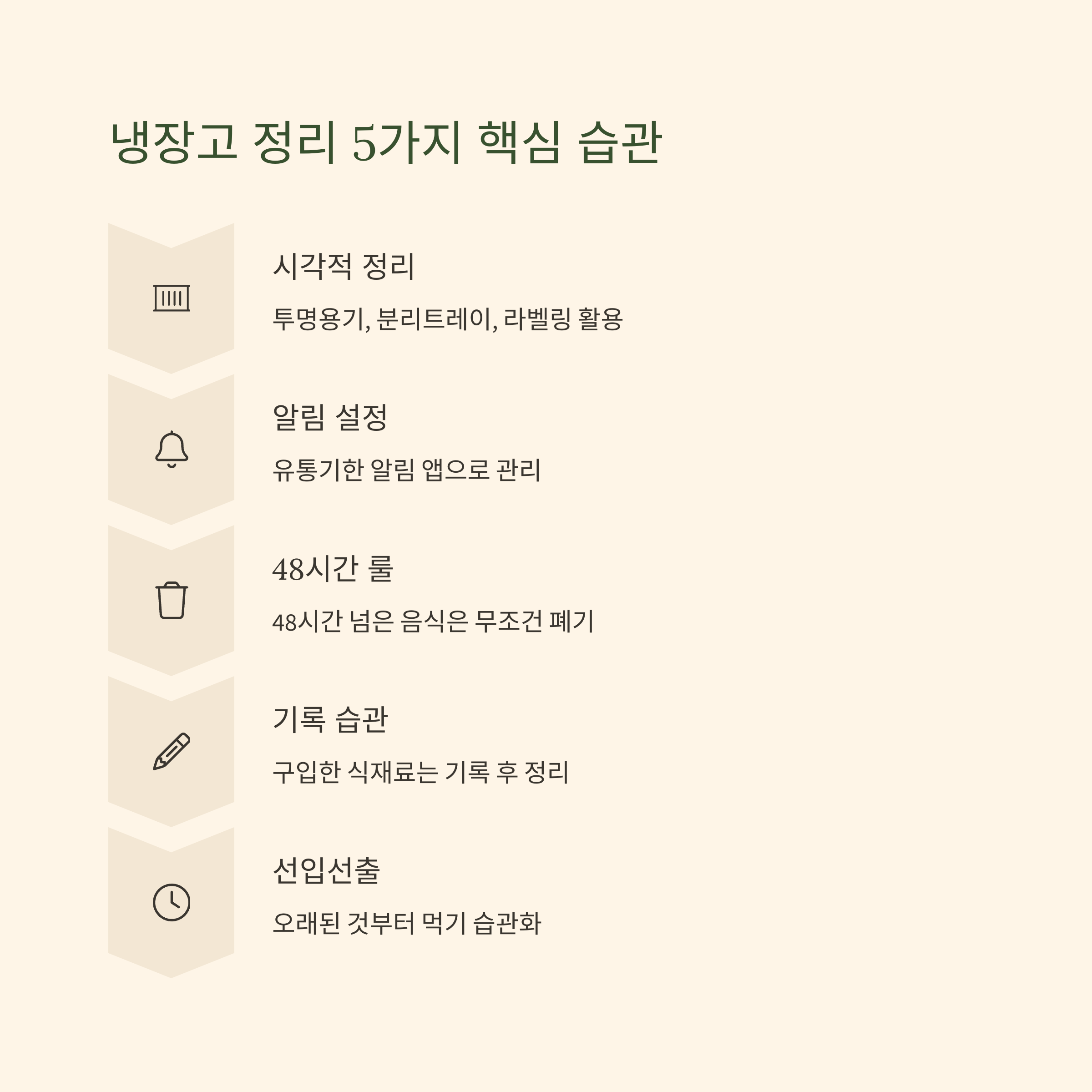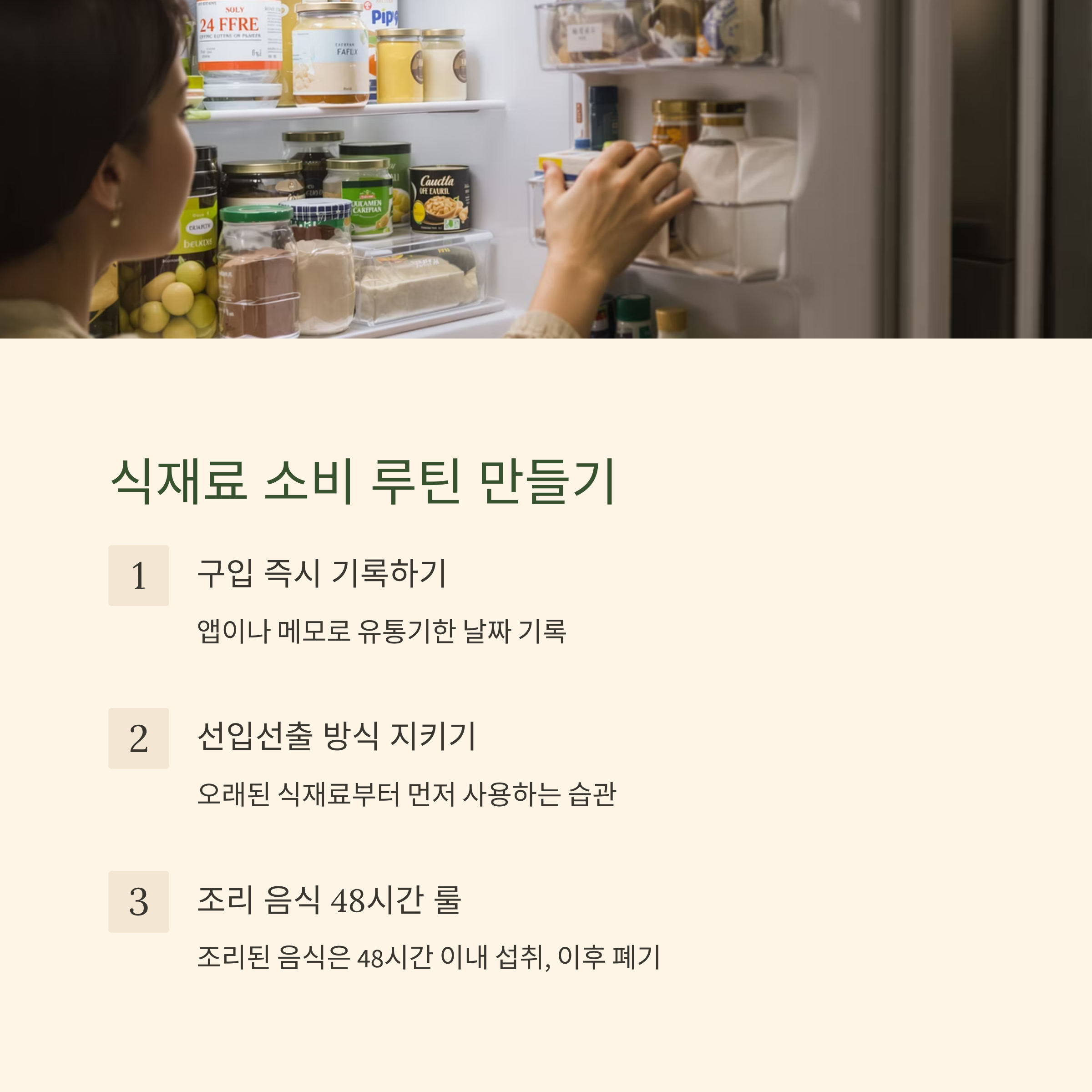 - '오래된 것부터 먹기' 습관화