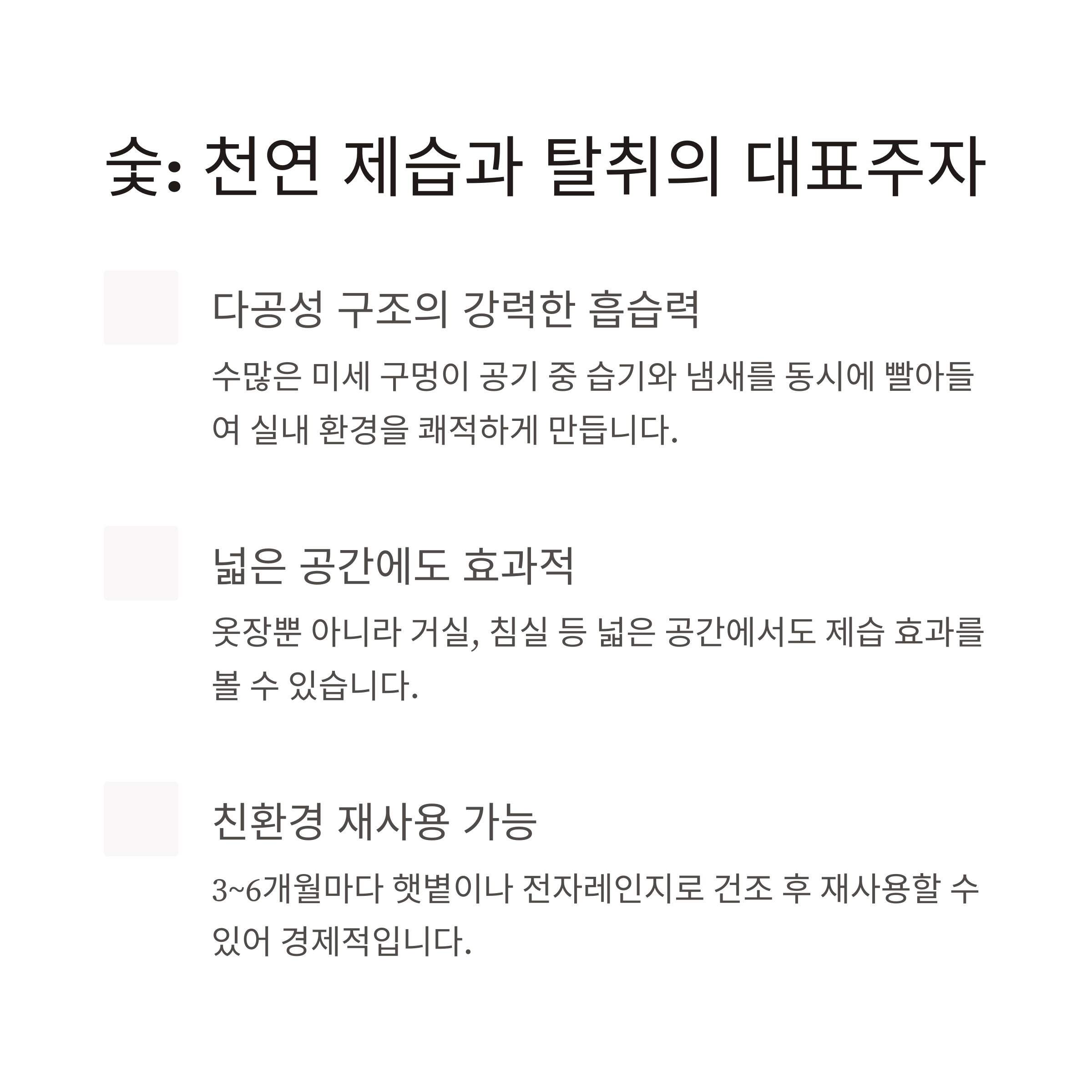 | 효과 | 습기 흡수, 냄새 제거, 공기 정화 |