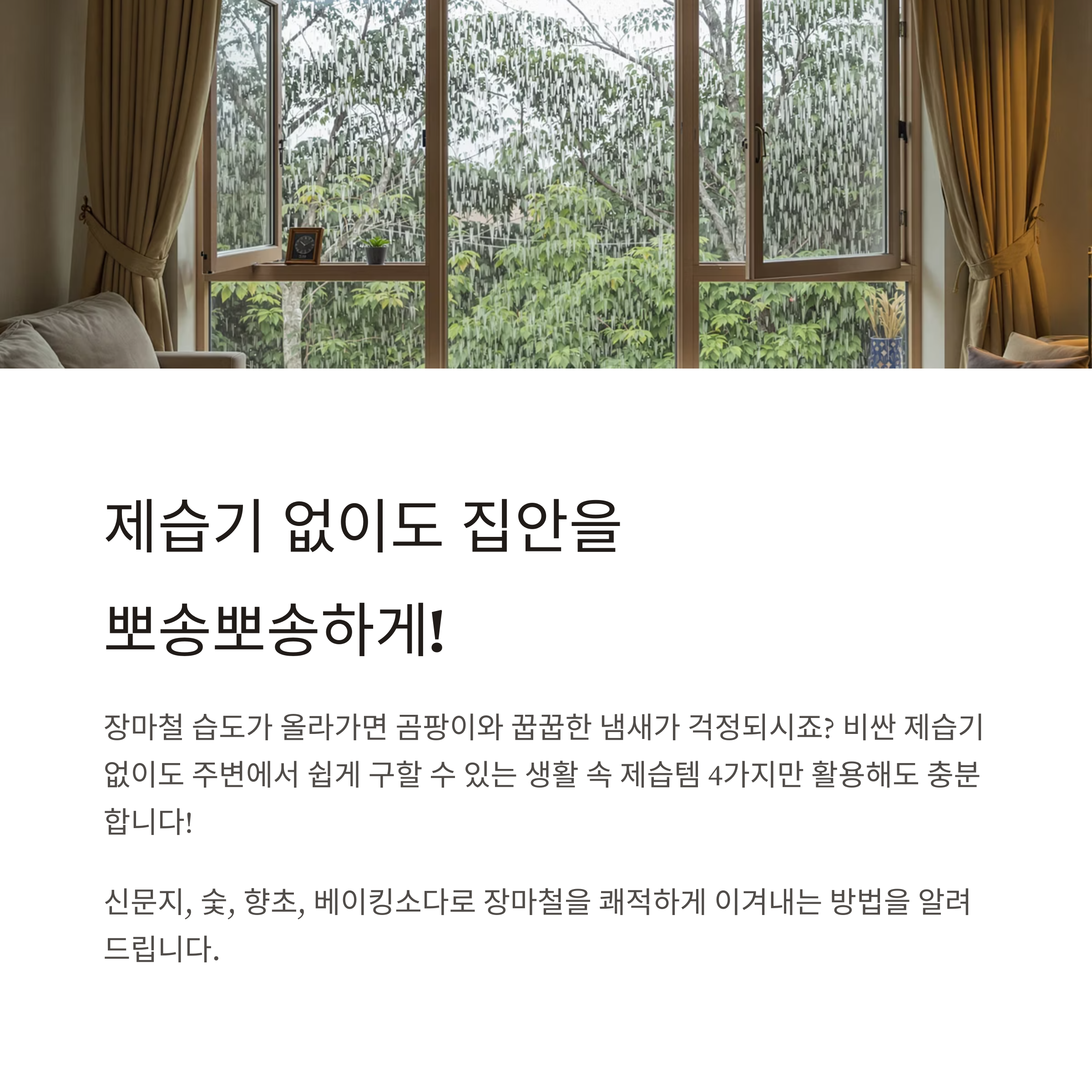 제습기 없이도 실내 쾌적하게! 생활 속 제습템으로 장마철 이겨내기