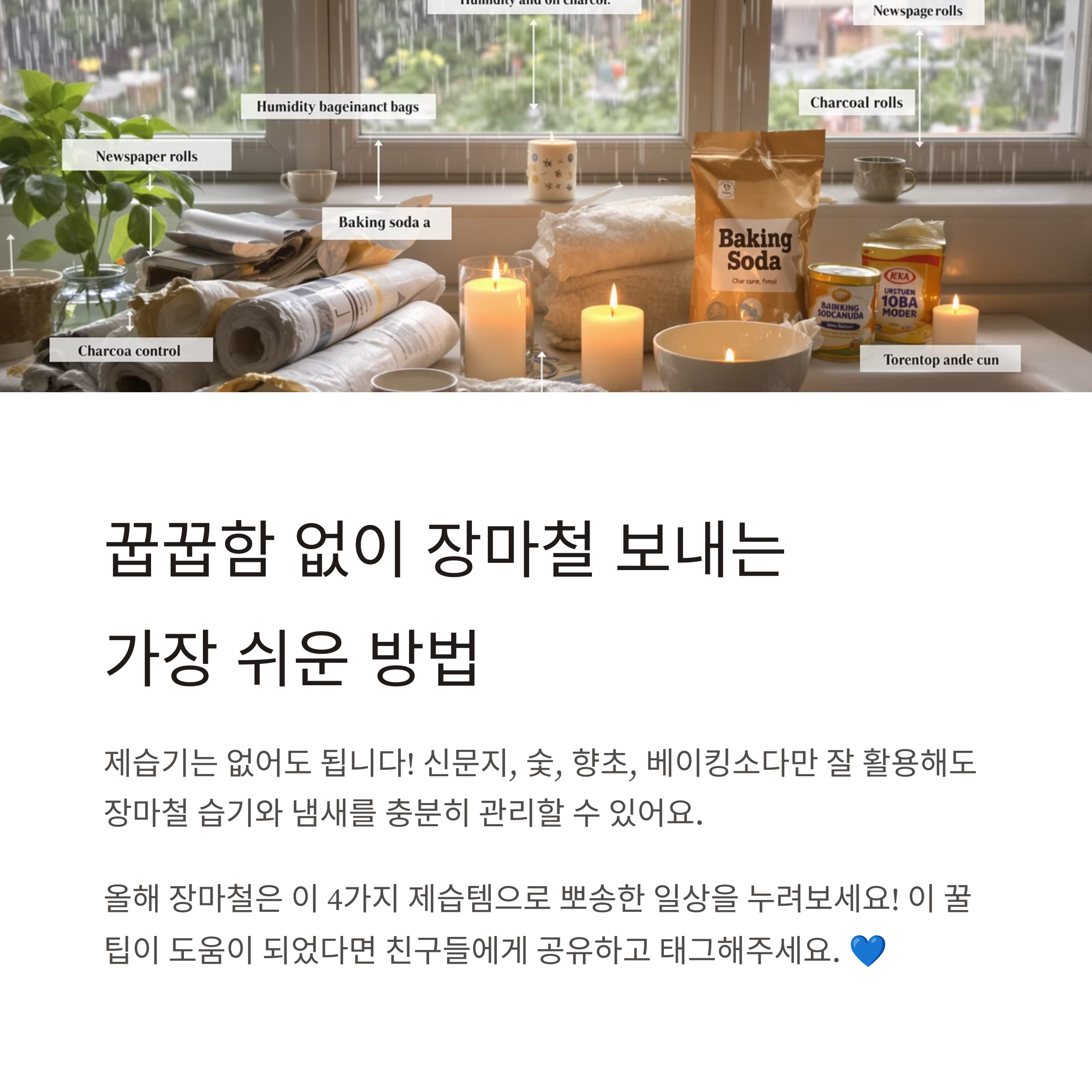 생활 속 제습템만 잘 활용해도 장마철 습기와 냄새를 충분히 관리할 수 있습니다.