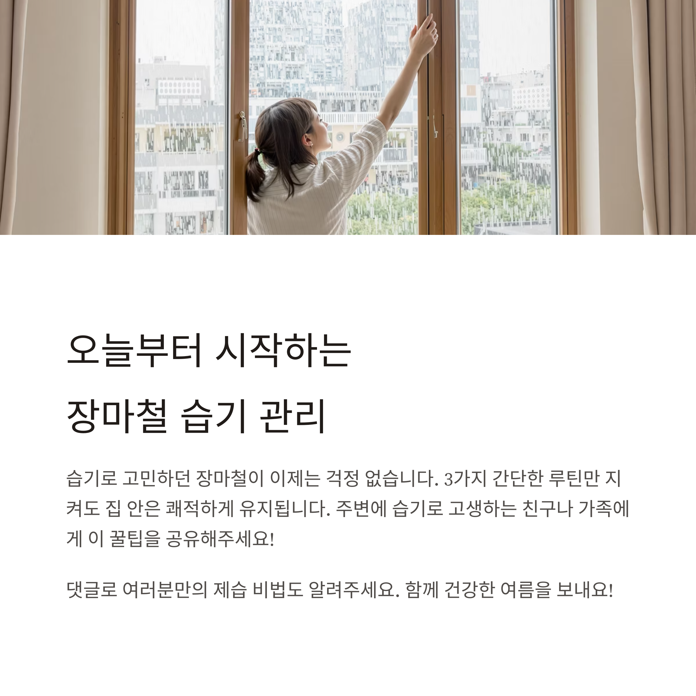 특히 장마철 평균 습도가 80%에 육박하는 날에는 이 루틴이 더욱 빛을 발합니다.