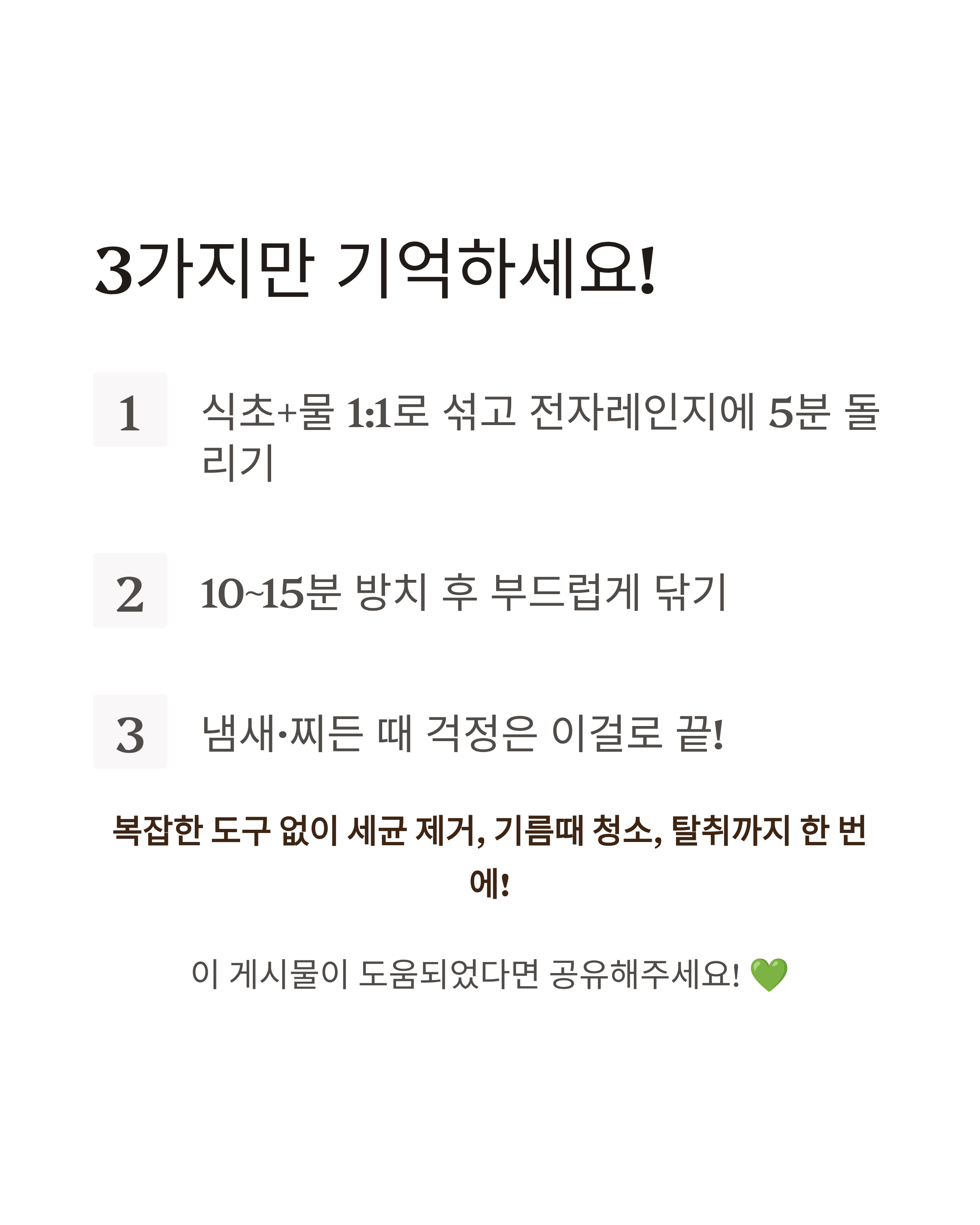 - 식초+물 1:1로 섞고 전자레인지에 5분 돌리기