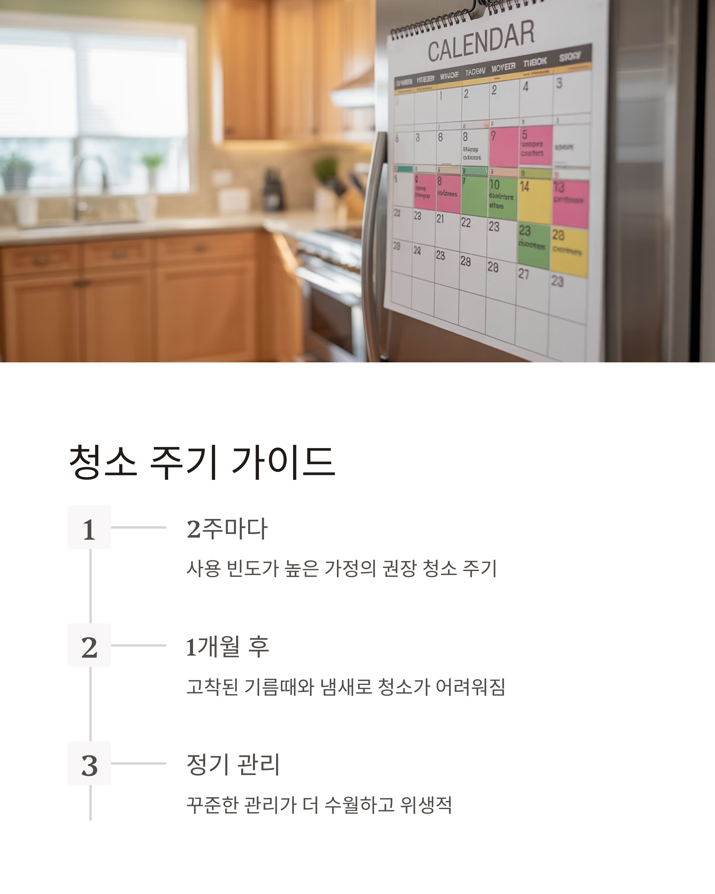 2주에 한 번 청소가 가장 적절하다고 합니다.