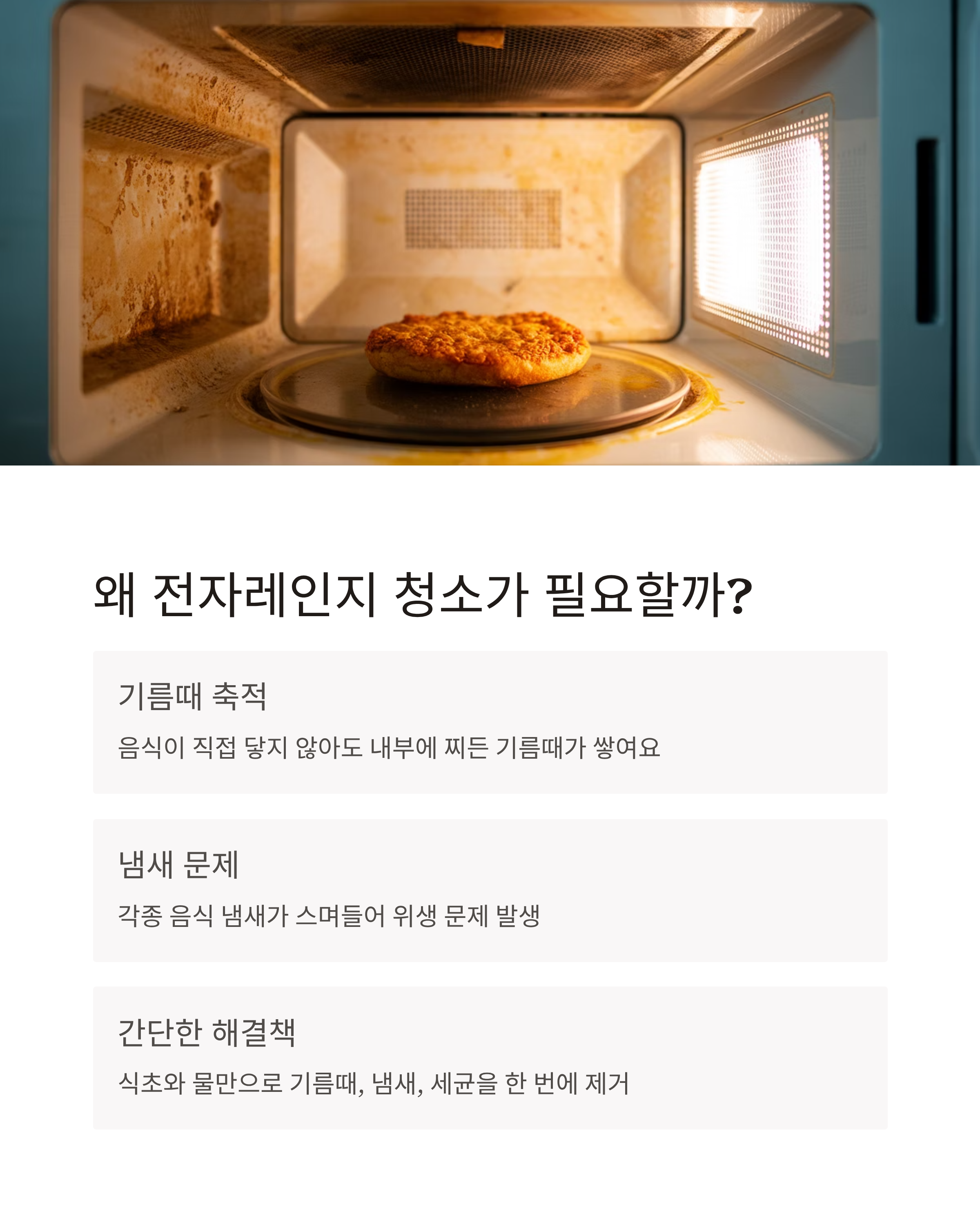 전자레인지는 음식이 직접 닿지 않아도 내부에 찌든 기름때와 각종 음식 냄새가 쉽게 스며들어 위생 문제를 일으킬 수 있어요. 다행히도 2025년 기준 실험 데이터를 바탕으로 식초와 물만 있으면 기름때, 냄새, 세균을 한 번에 제거할 수 있는 간단한 청소법이 입증됐습니다. 집에 흔히 있는 재료로 간단하게, 하지만 효과는 확실한 식초 청소법을 알려드릴게요.