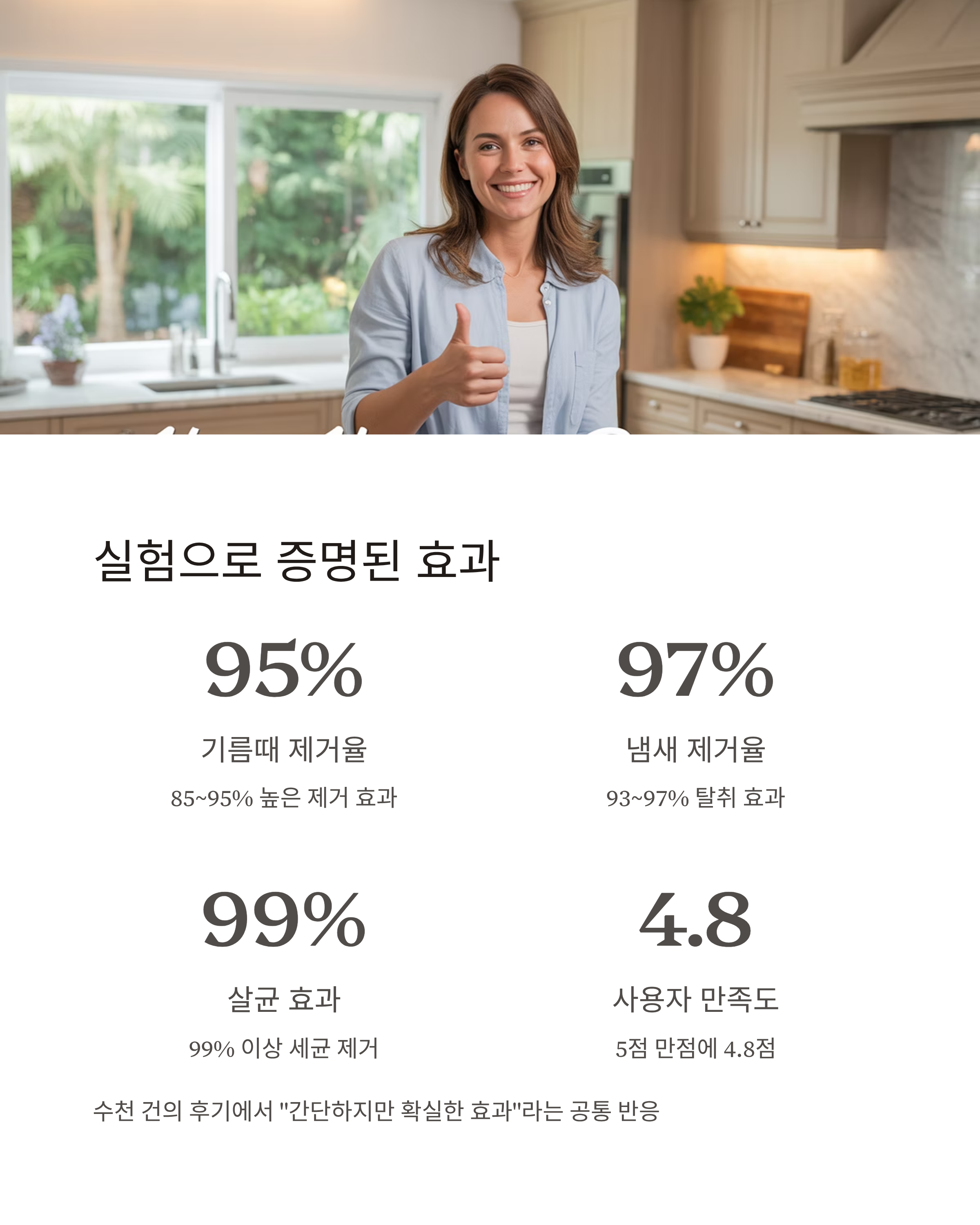 | 기름때 제거율 | 85~95% | 매우 높음 |
