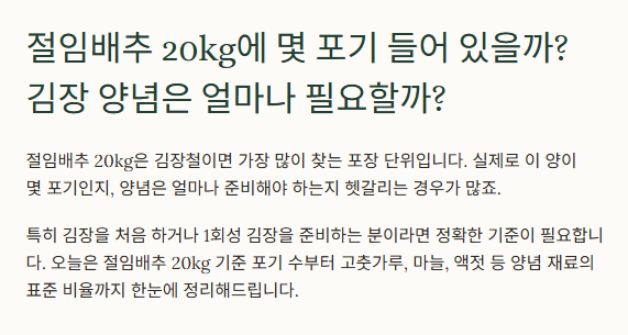 마무리 팁 : ‘절임배추 20kg’이 기준입니다