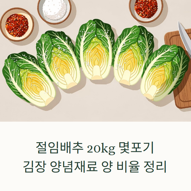 절임배추 20kg은 김장철이면 가장 많이 찾는 포장 단위 중 하나입니다. 그런데 실제로 이 양이 몇 포기인지, 양념은 얼마나 준비해야 하는지 헷갈리는 경우가 많죠. 특히 김장을 처음 하거나 1회성 김장을 준비하는 분이라면 정확한 기준이 필요합니다. 오늘은 절임배추 20kg 기준 포기 수부터 고춧가루, 마늘, 액젓 등 양념 재료의 표준 비율까지 한눈에 정리해 드립니다.