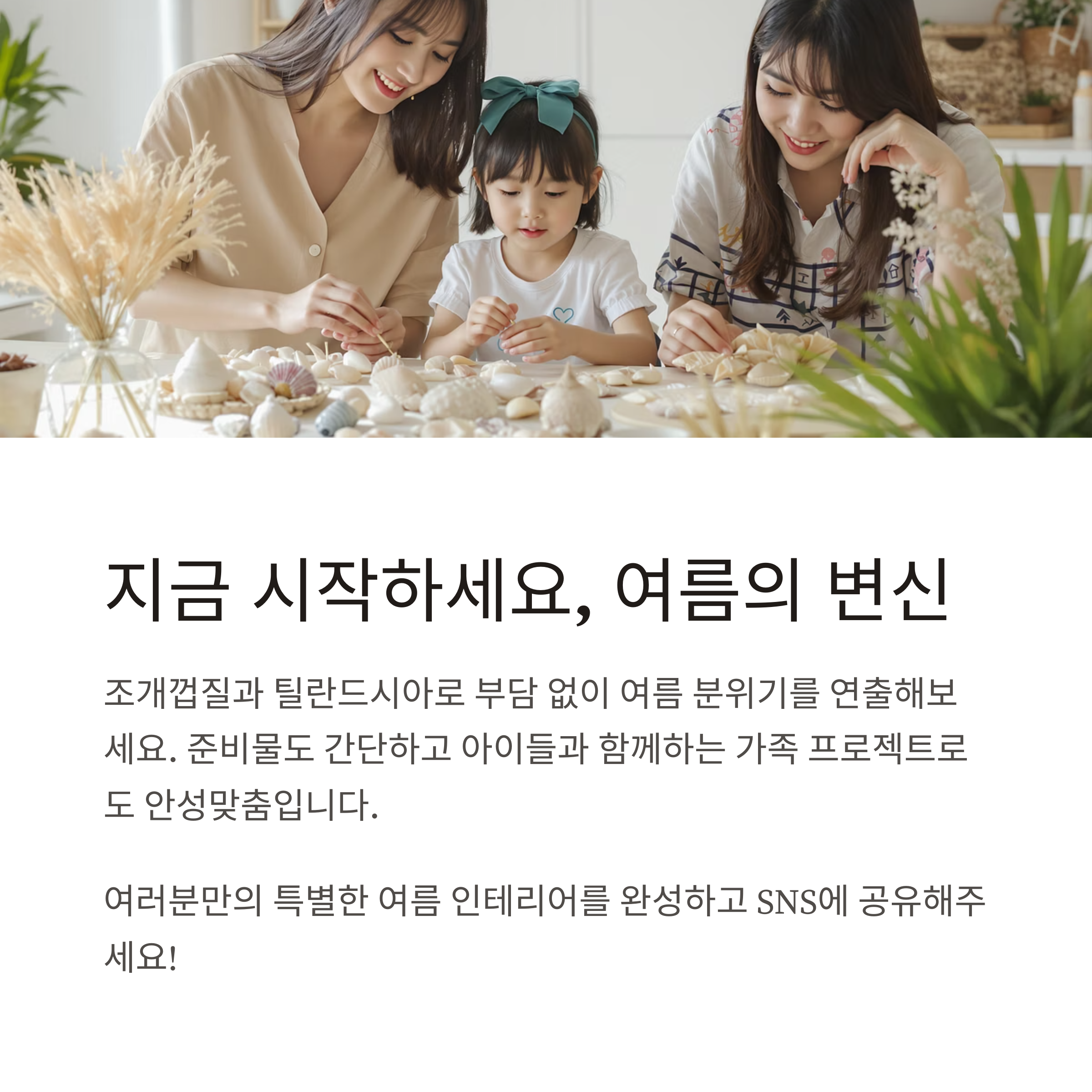 조개껍질과 틸란드시아는 계절감 있는 인테리어 소재로