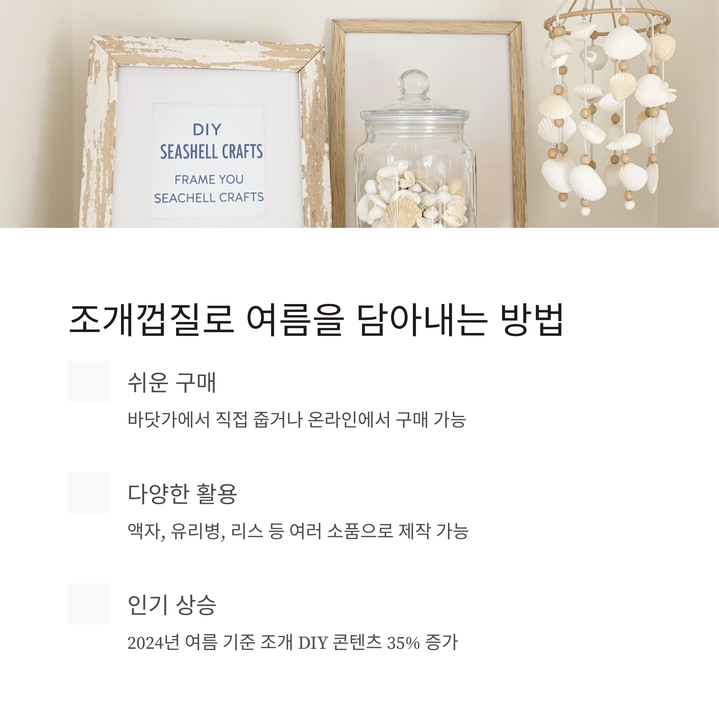 실제로 조개껍질 DIY 콘텐츠는 2024년 여름 기준