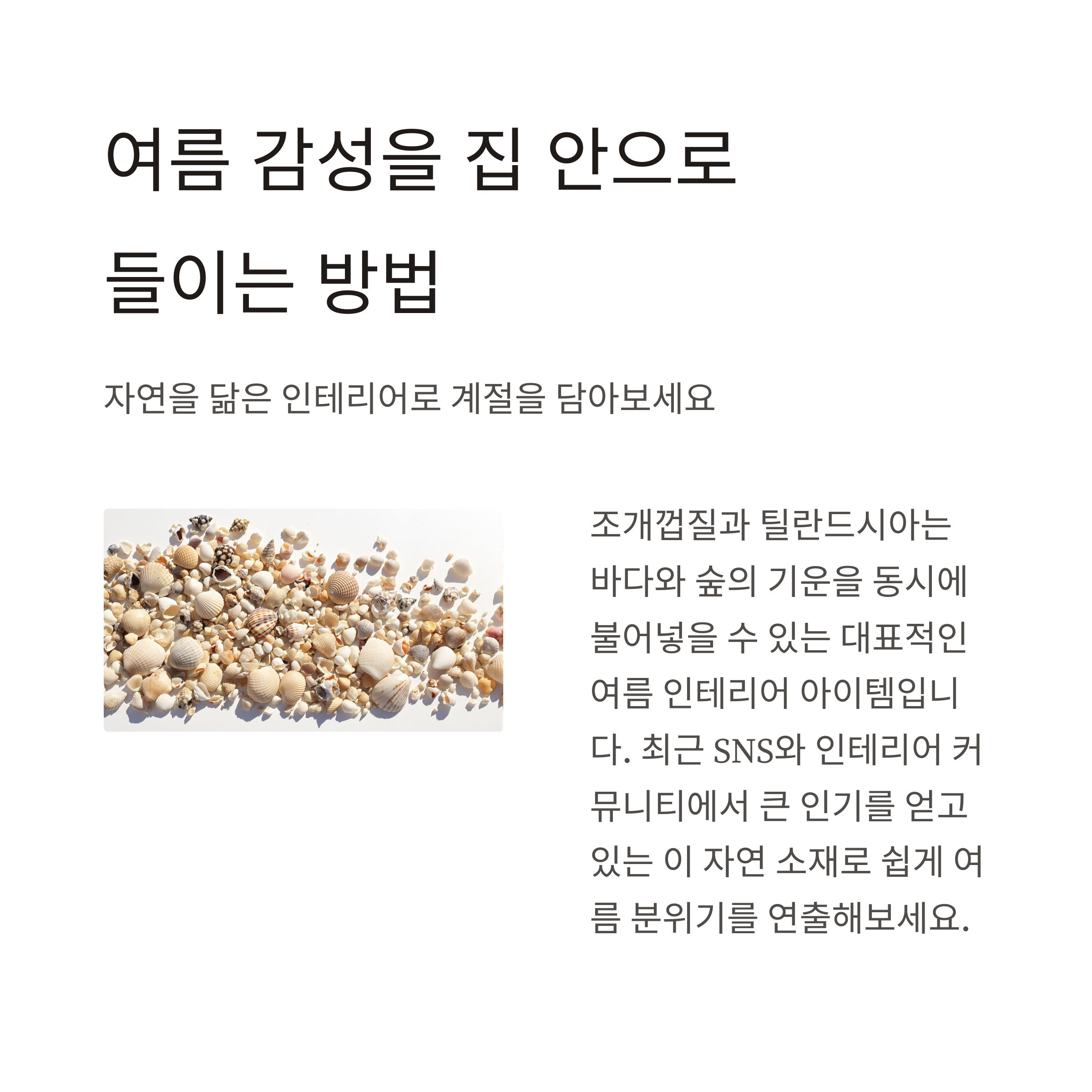조개껍질과 틸란드시아는 계절감 있는 인테리어 소재로