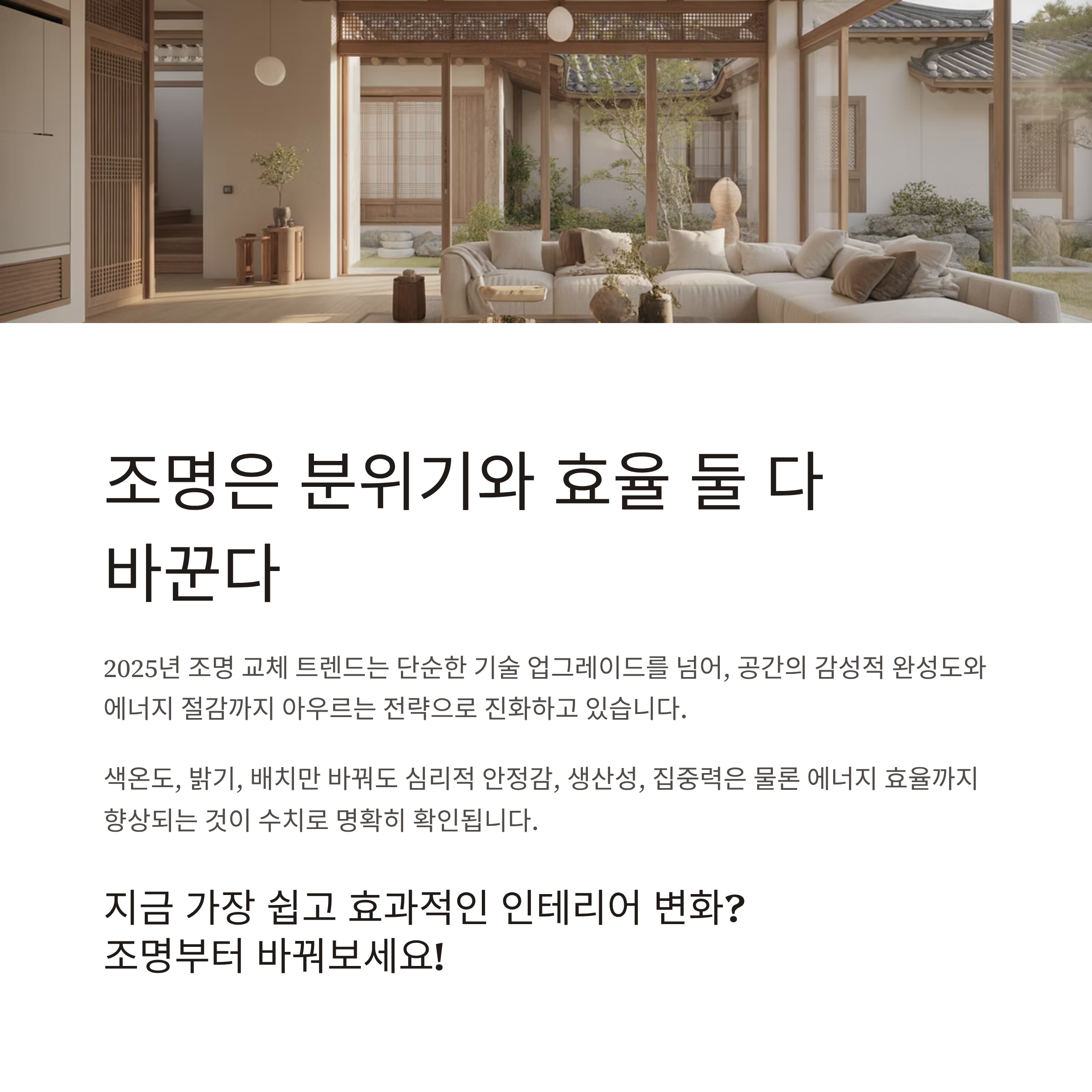2025년 조명 교체 트렌드는 단순한 기술 업그레이드를 넘어,