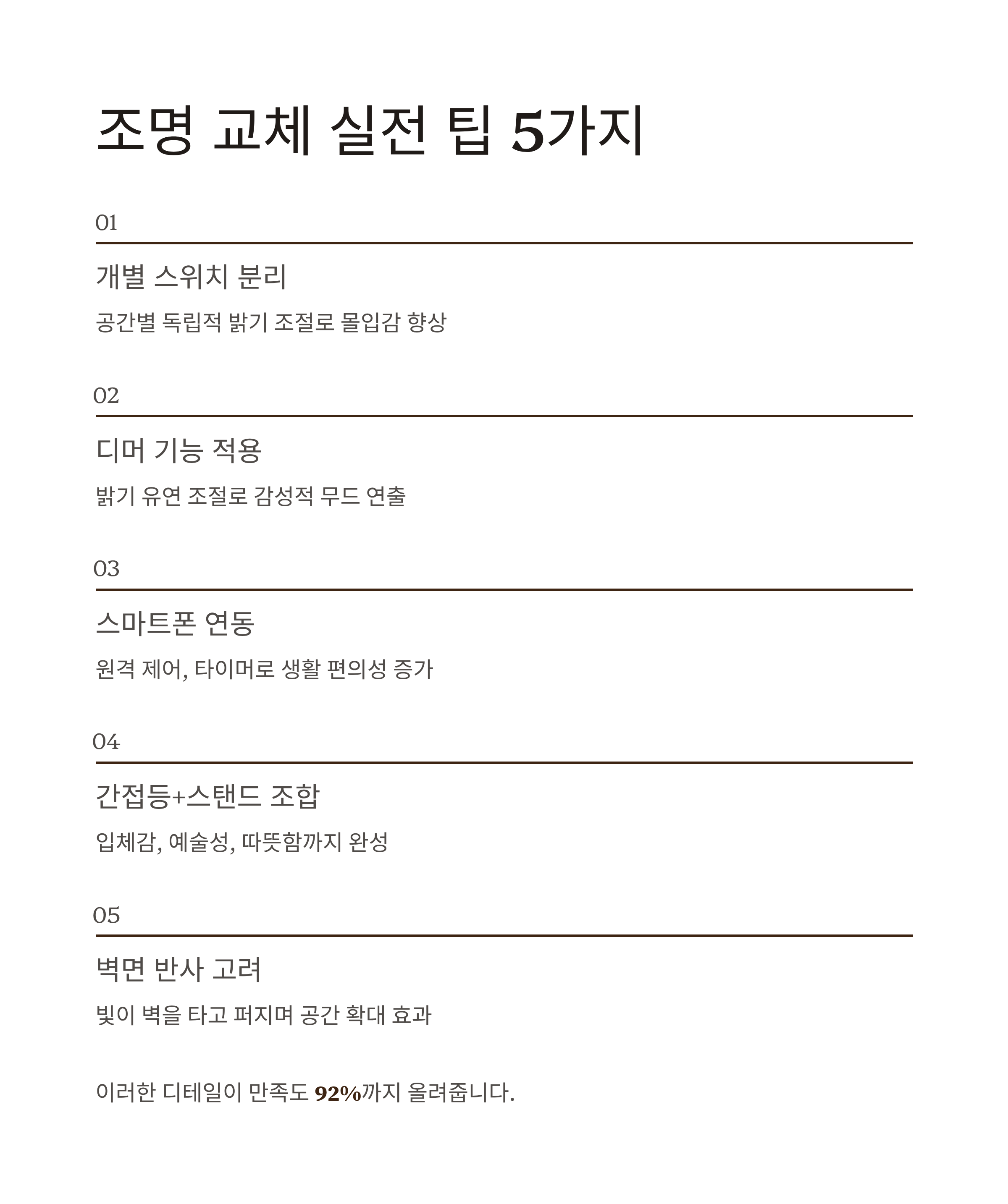 다음 팁을 적용하면 조명 교체 후 만족도가 92%까지 올라간 사례도 있어요.