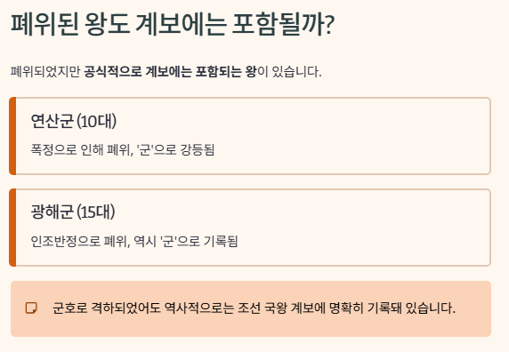 즉, 군호로 격하되었어도 역사적으로는 조선 국왕 계보에 명확히 기록돼 있습니다.